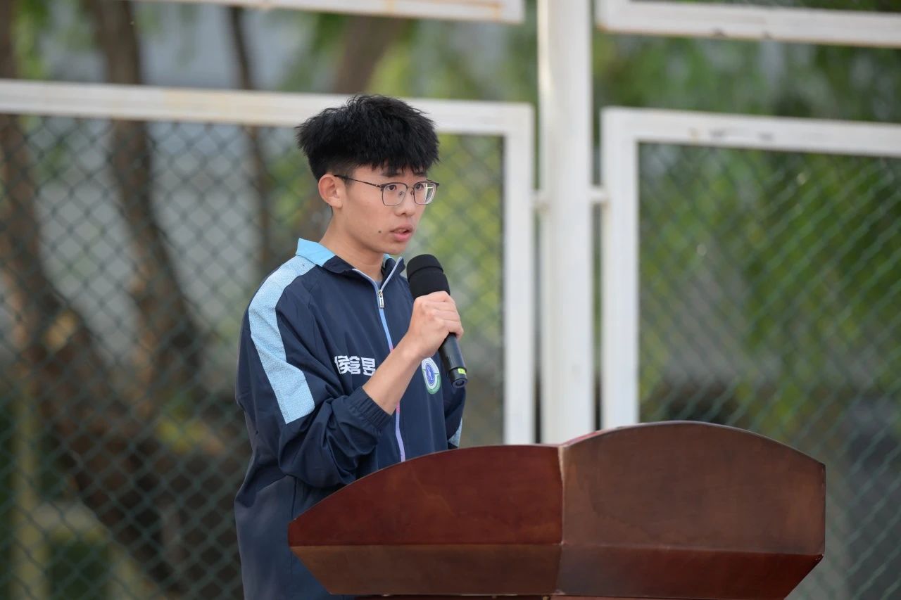 运动员代表候晗昱同学代表全体运动员宣誓:“以热血诠释体育精神,以拼搏捍卫青春尊严!”